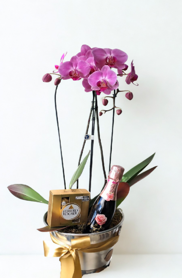 Linda orquídea phaleanopsis, acompanhada de um petalo d amore baby e um ferrero rocher 4 .....