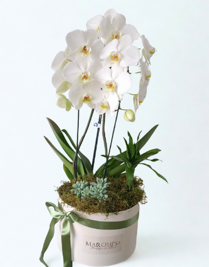 Orquídea Cascata em box artesanal , envolto por delicado tecido shine .....