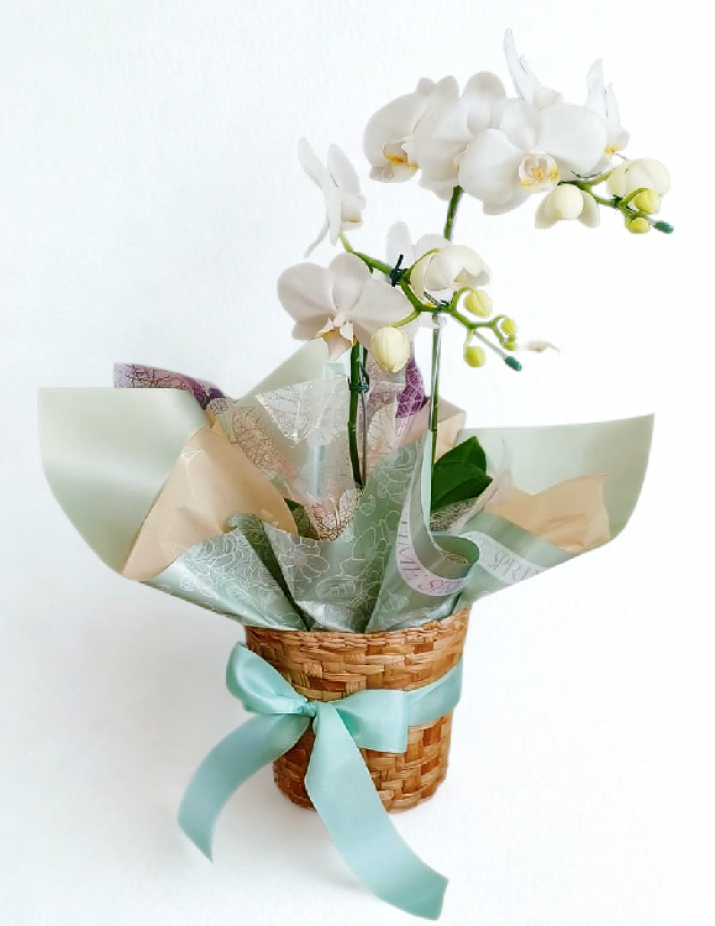 Box com tampa tamanho gigante compost por lindo arranjo com dois vasos de orquídeas phaleanops.....