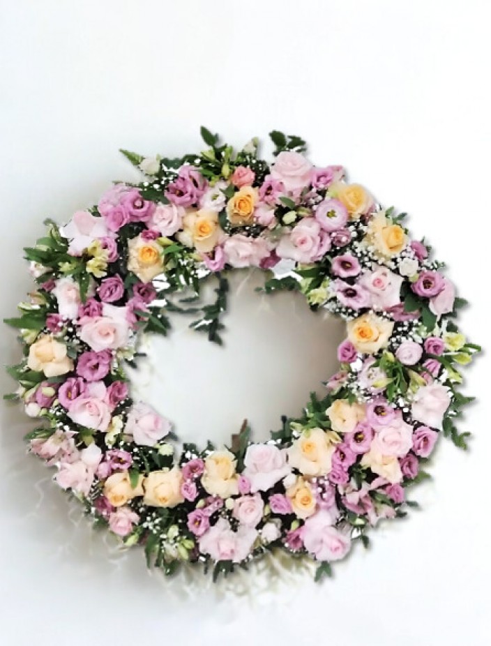 GUIRLANDA NOBLESSE ROSAS, LISIANTUS -, ALSTROMERIAS E FOLHAGENS DIAMETR.....