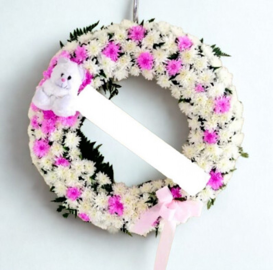 GUIRLANDA PAZ FLORES BRANCAS DIAMETRO DE 0,70 ACOMPANHA FAIXA COM MENSAGEM E CAVALETE .....