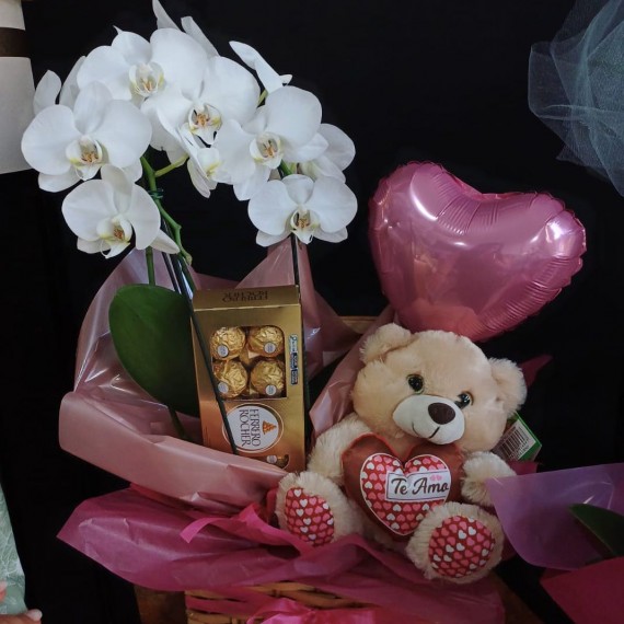 Lindo Baú decorado contendo: 1 orquídea Cascata 1 Vinho Rosé 1 Ferrero Rocher 8 Unidades 1 Bubble de.....
