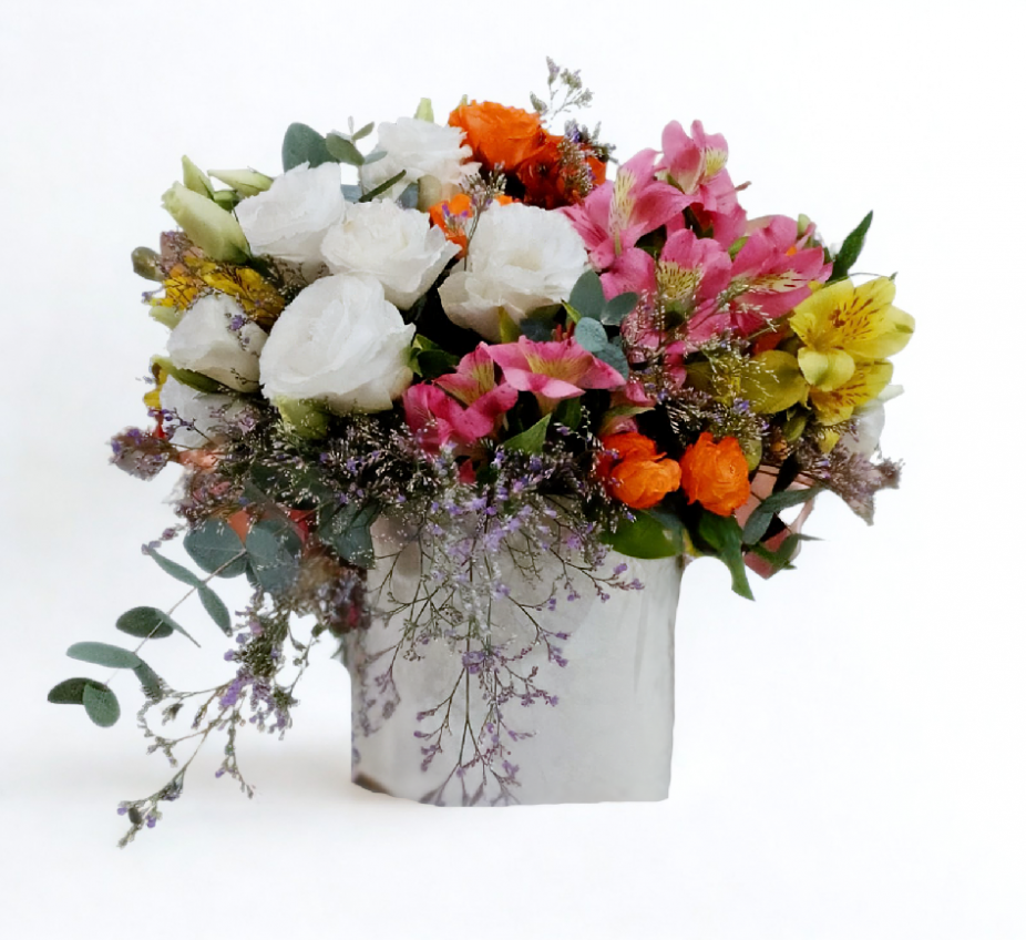 Lindo Buquê na caixa com girassóis e rosas + complementos .....