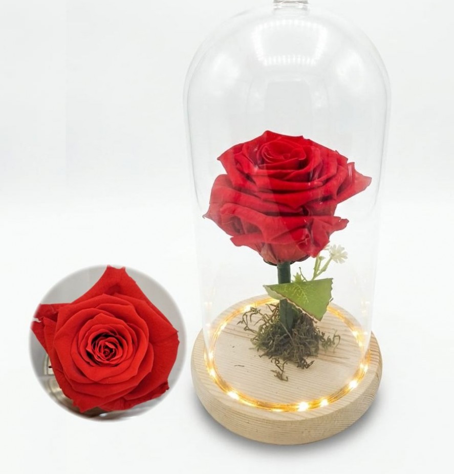 Nossas Rosas Encantadas são flores naturais e verdadeiras que passaram por um processo tecnológico de preservação. Isso permite que elas mantenham o frescor e o toque de uma flor viva por 2 anos ou mais, sem precisar de água ou luz solar. O que você precisa saber: A Rosa: Natural e preservada (mantém a vivacidade e a textura por anos). Apresentação: Protegida em uma sofisticada cúpula de vidro ou acrílico. Composição: Para garantir a durabilidade de todo o arranjo, os adereços decorativos internos são artesanais e artificiais, destacando o brilho da rosa central que é 100% natural. Um presente eterno que une a delicadeza da flor natural com a durabilidade que você deseja.